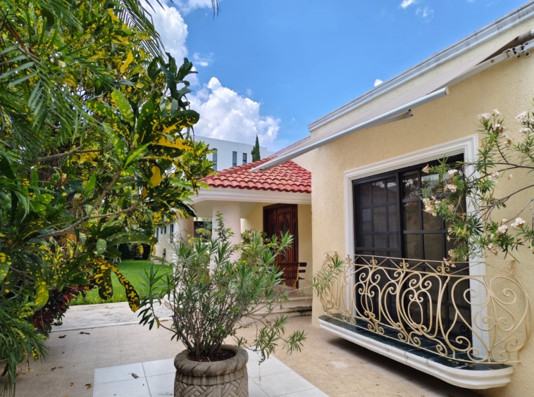 – Recámaras: Tres habitaciones, cada una con baño propio. La recámara principal cuenta con walking closet, tina y terraza privada con vista a la piscina y jardín.